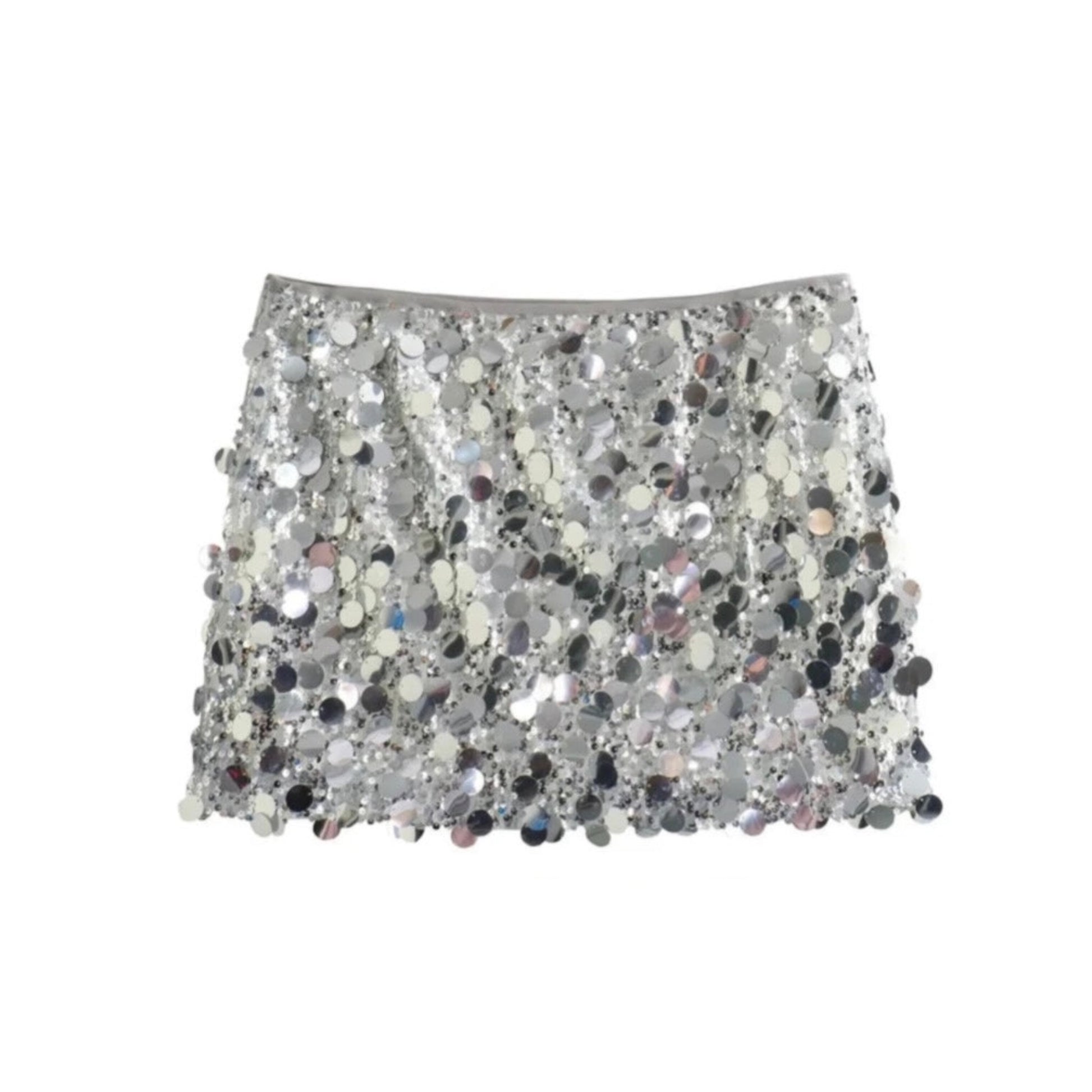“Disco" mini skirt with dazzling sequins, available in black and silver. A glamorous design perfect for unforgettable nights, combining elegance and boldness with a touch of sophistication.